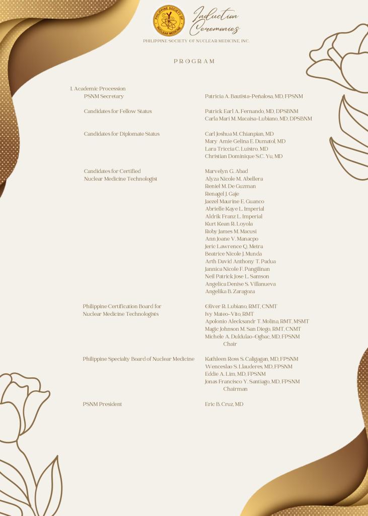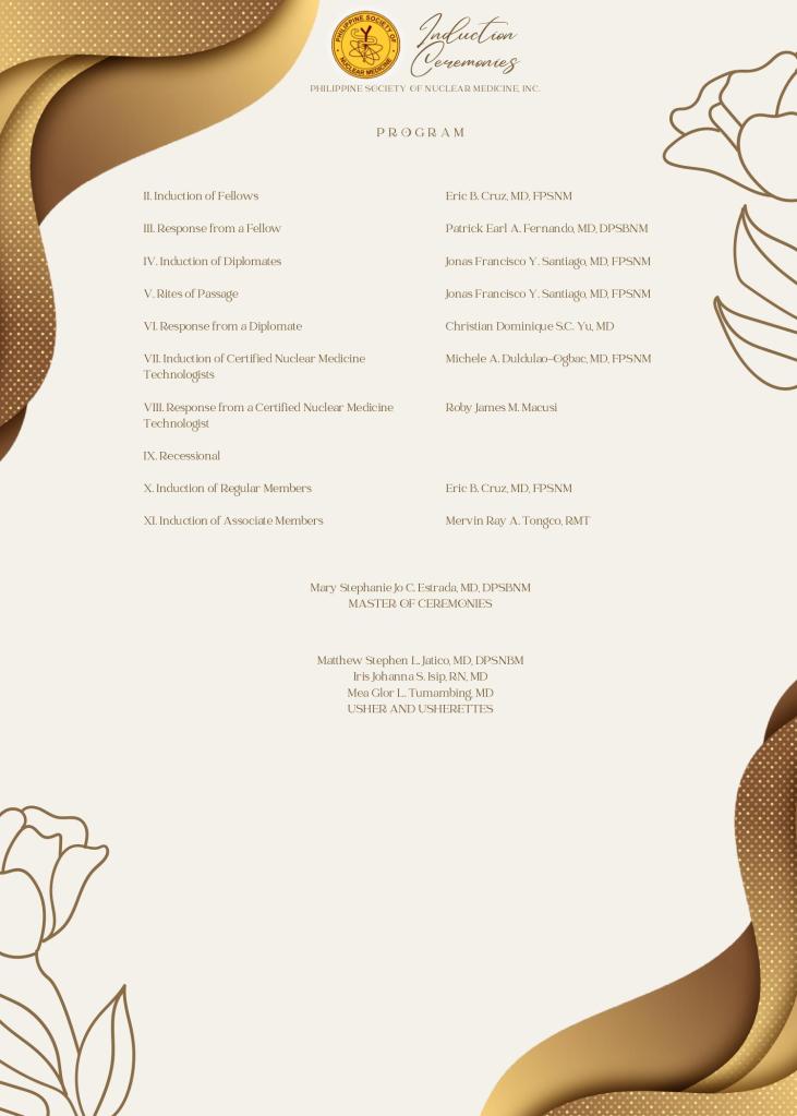 The Induction Ceremonies will take place during the Fellowship Night.